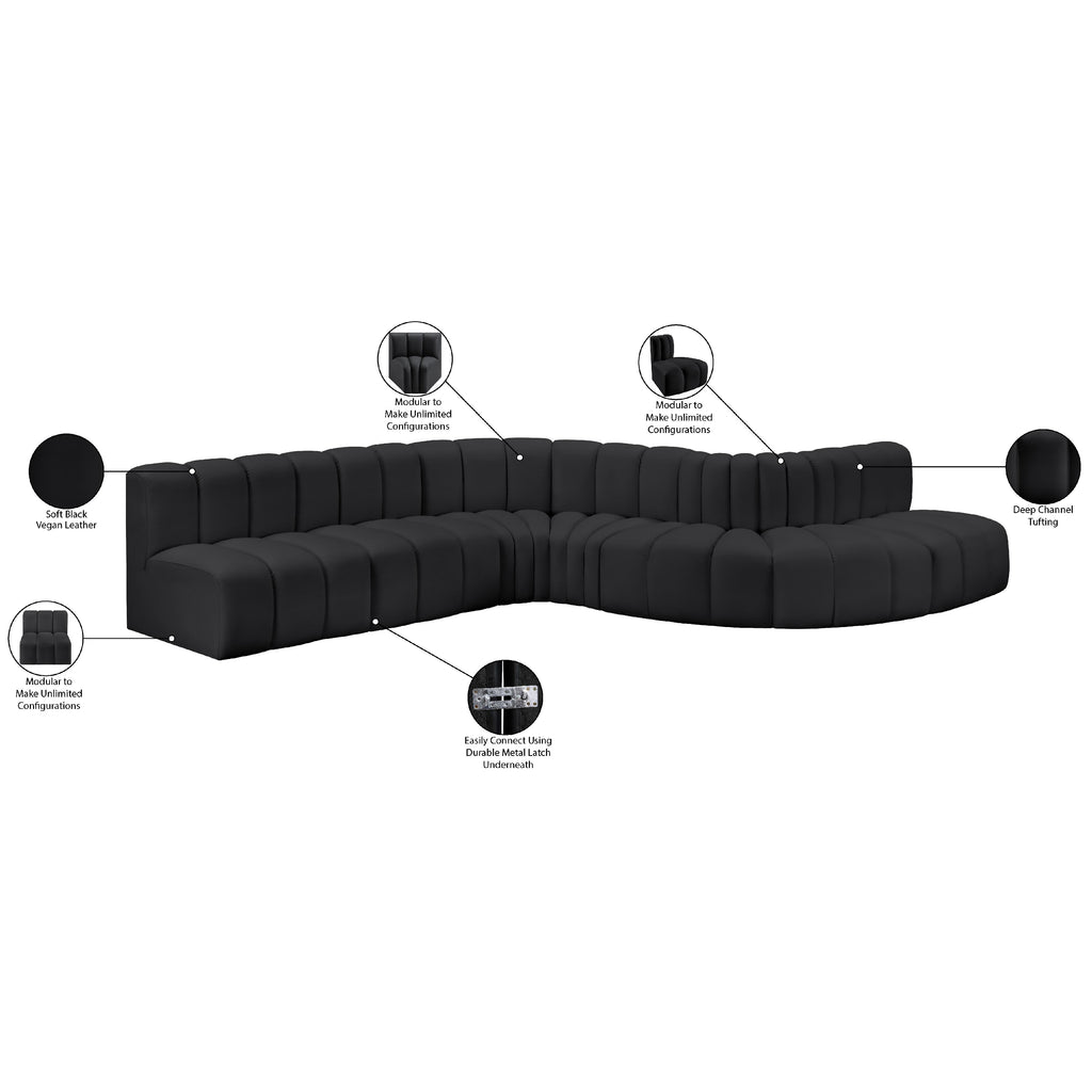 Meridian Arc Black Vegan Leather Upholstered Modular Ottoman