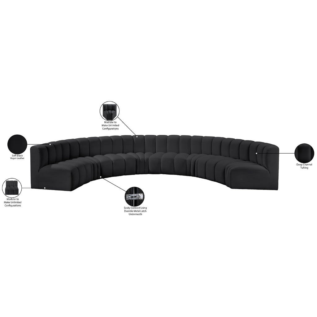 Meridian Arc Black Vegan Leather Upholstered Modular Ottoman