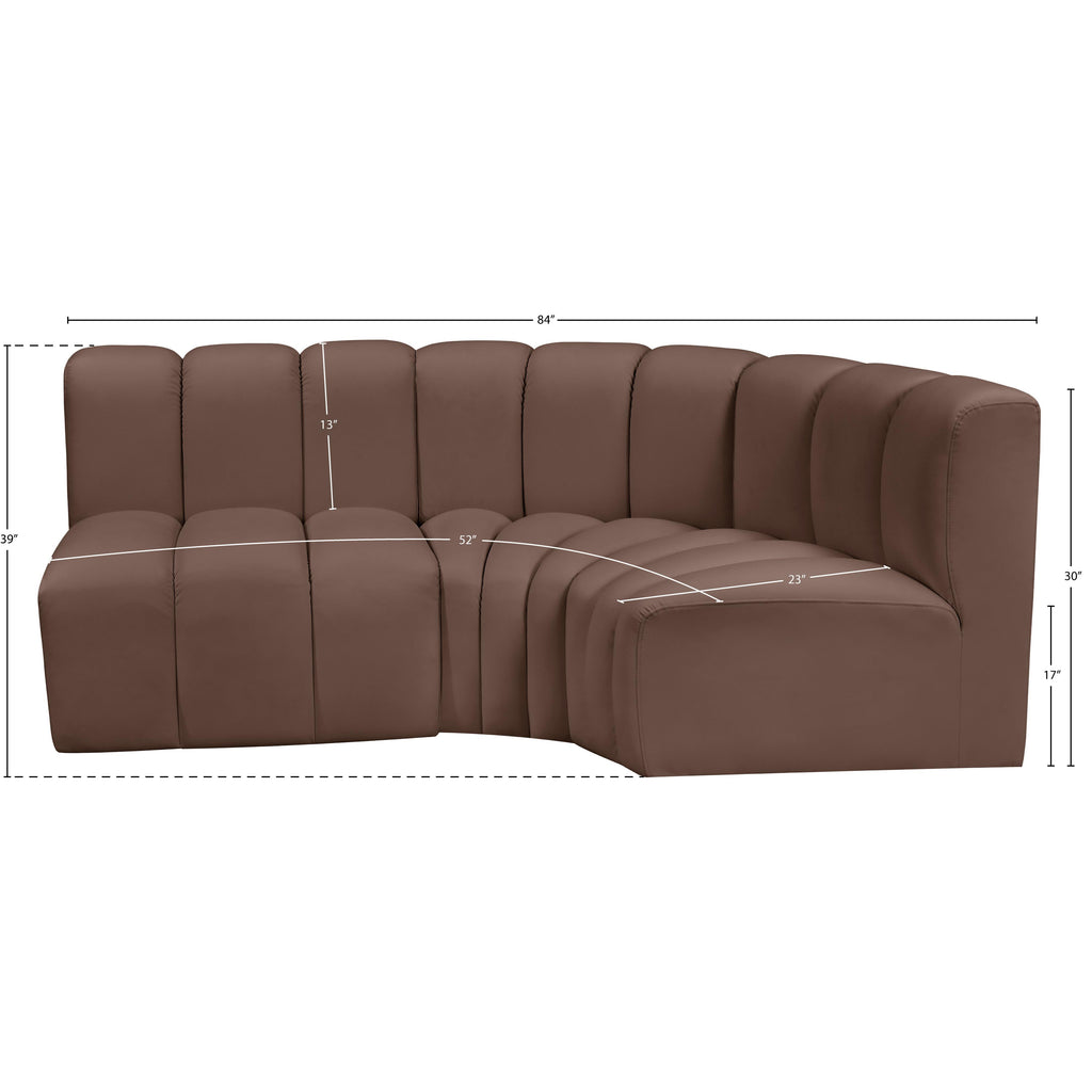 Meridian Arc 84" Brown Boucle Fabric Upholstered 3 pc Modular Sectional