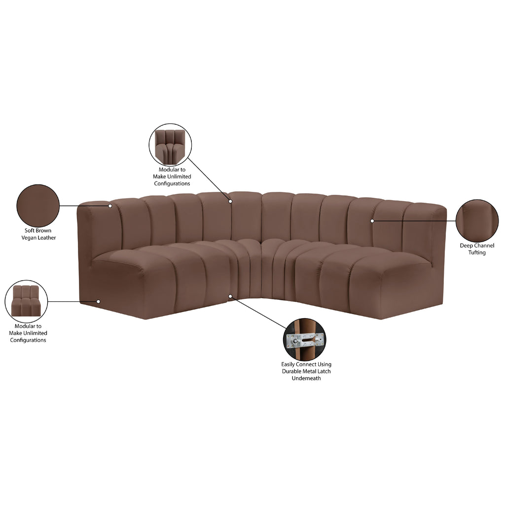 Meridian Arc Brown Vegan Leather Upholstered Modular Ottoman