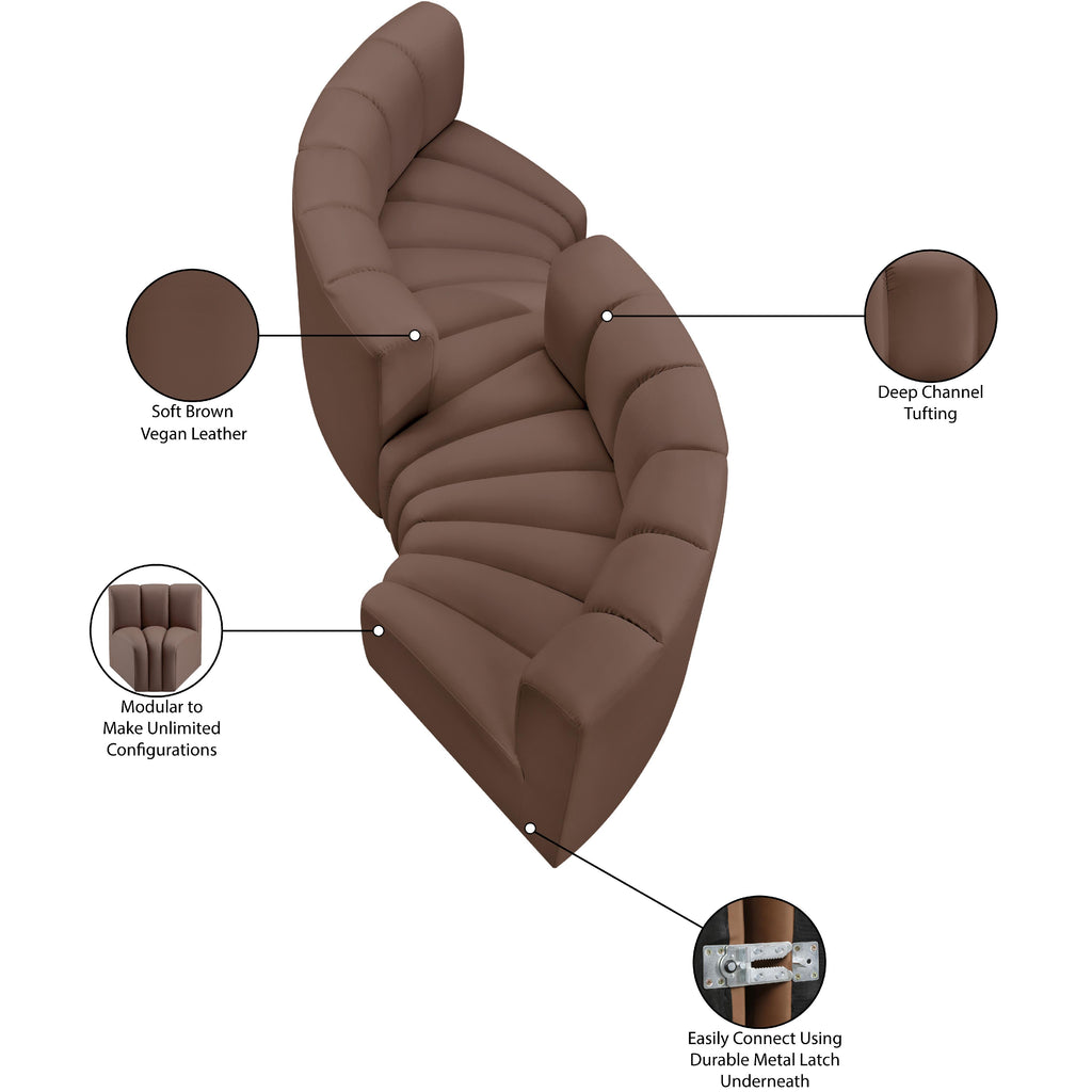 Meridian Arc Brown Vegan Leather Upholstered Modular Ottoman