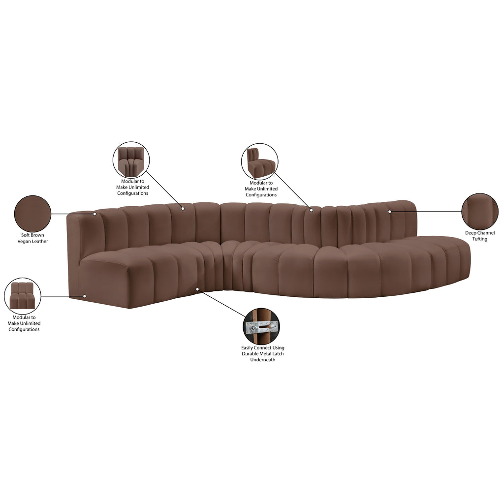 Meridian Arc Brown Vegan Leather Upholstered Modular Ottoman