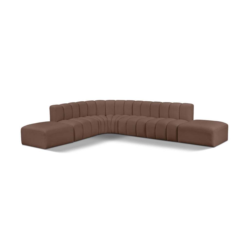 Meridian Arc Brown Vegan Leather Upholstered Modular Ottoman