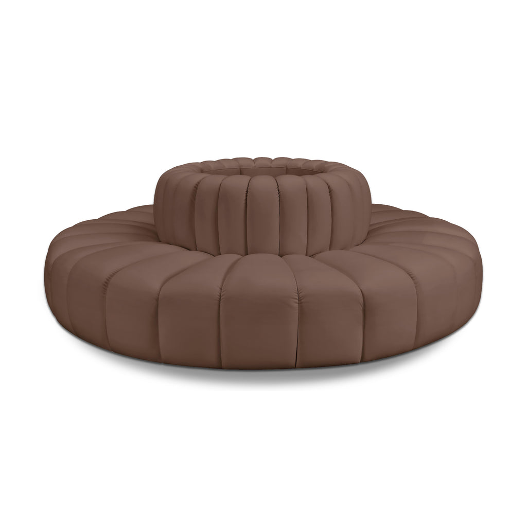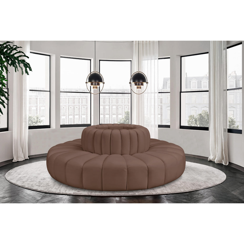 Meridian Arc Brown Vegan Leather Upholstered Modular Ottoman