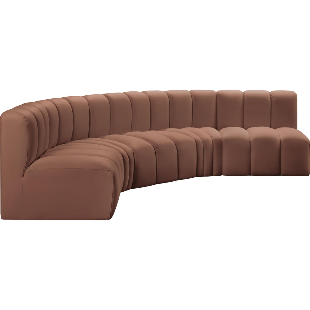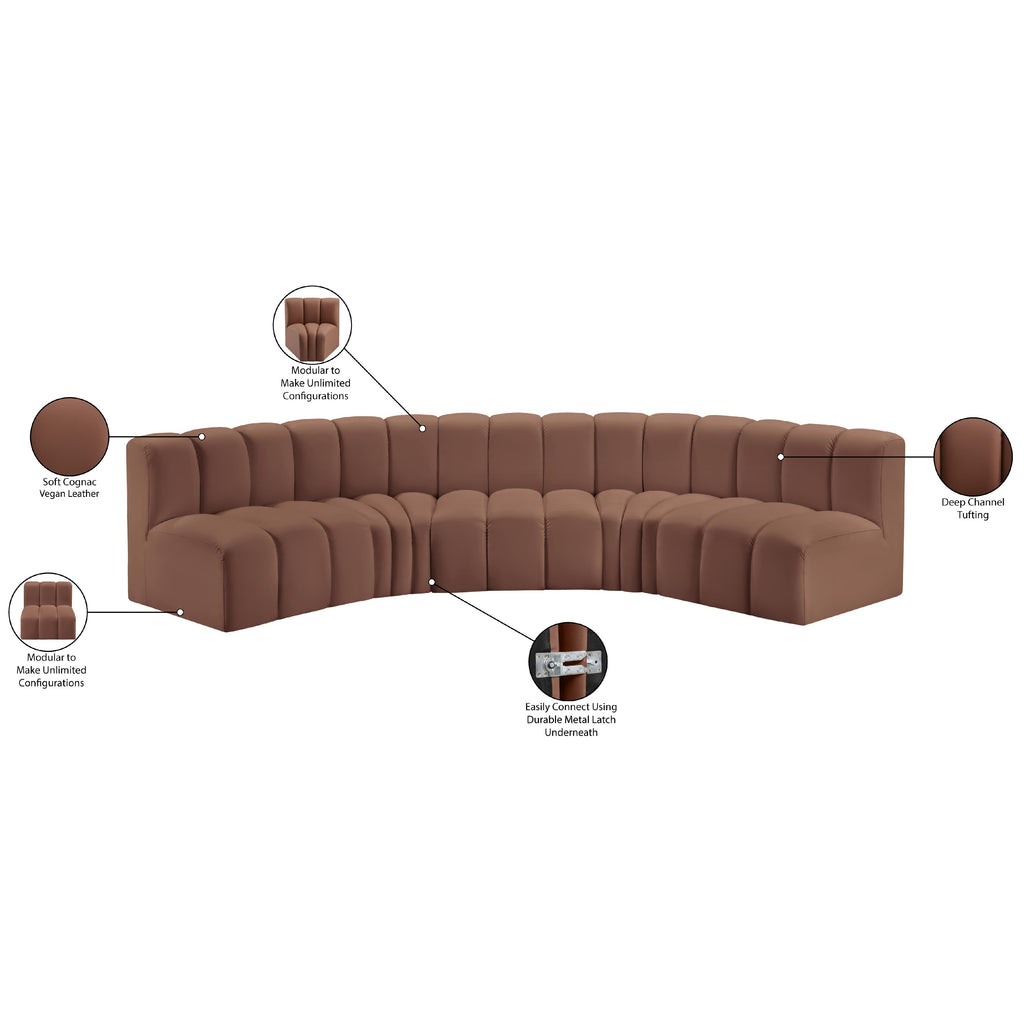 Meridian Arc Cognac Vegan Leather Upholstered Modular Ottoman