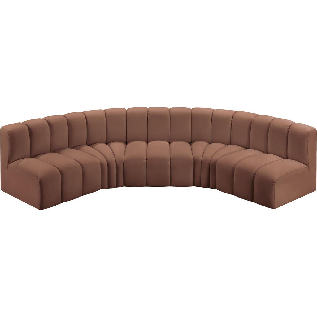 Meridian Arc 161" Cognac Velvet Upholstered 10 pc Modular Sectional