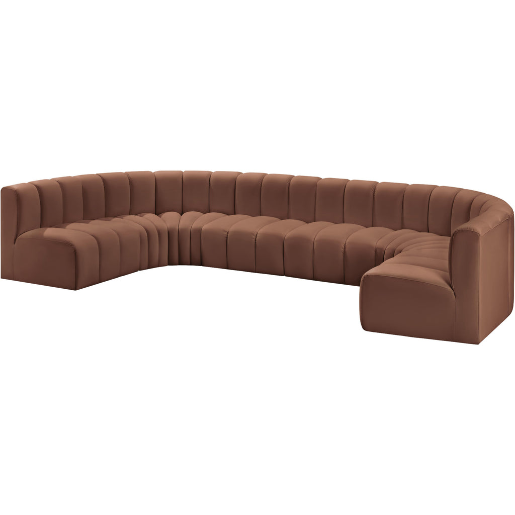 Meridian Arc 161" Cognac Velvet Upholstered 10 pc Modular Sectional