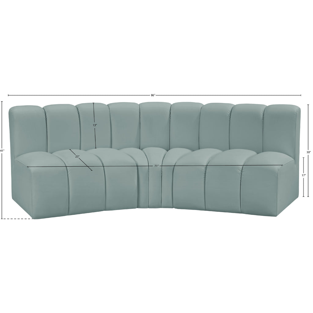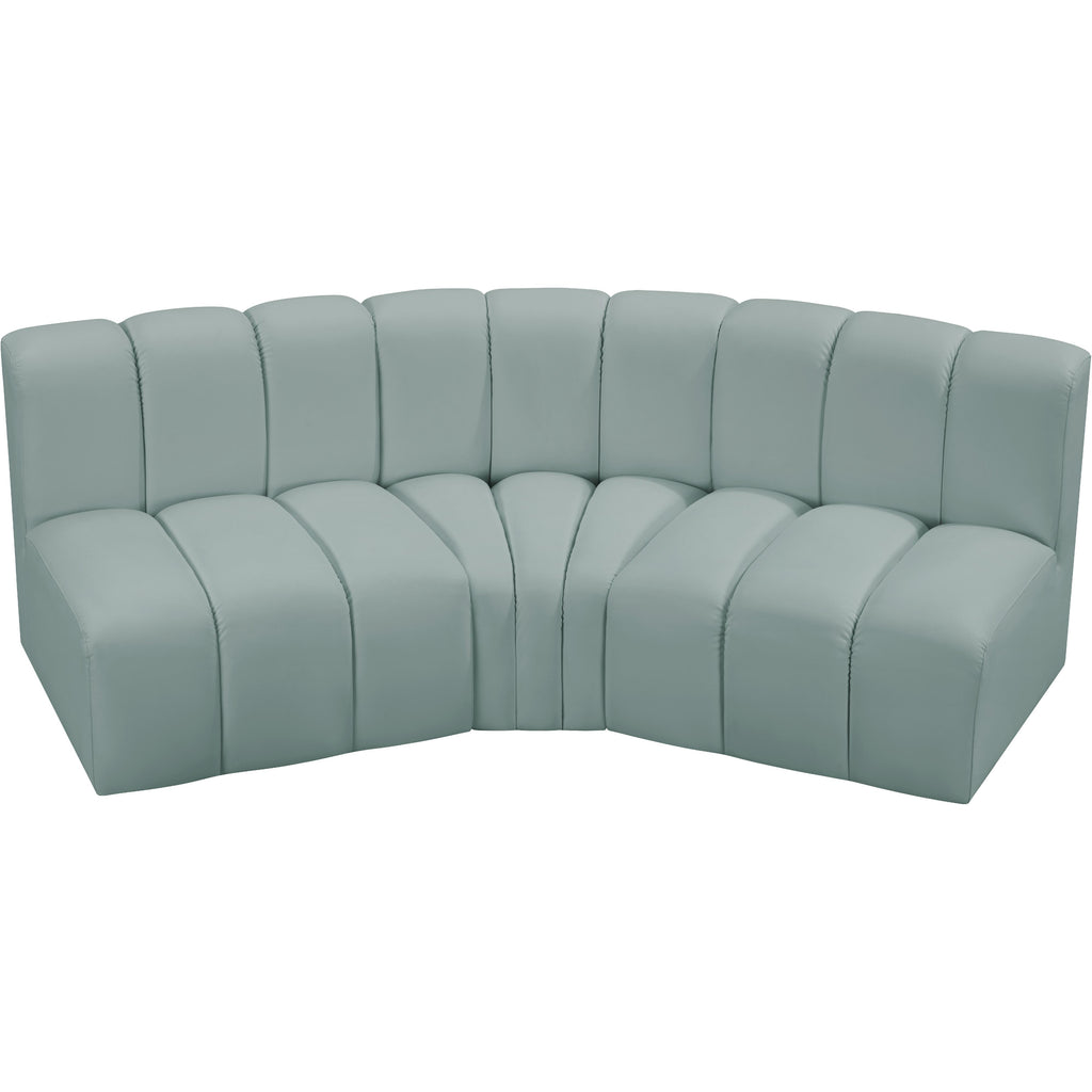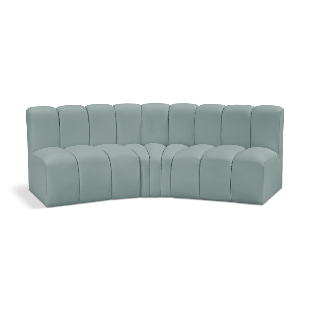Meridian Arc 89.5" Mint Vegan Leather Upholstered 3 pc Modular Sectional