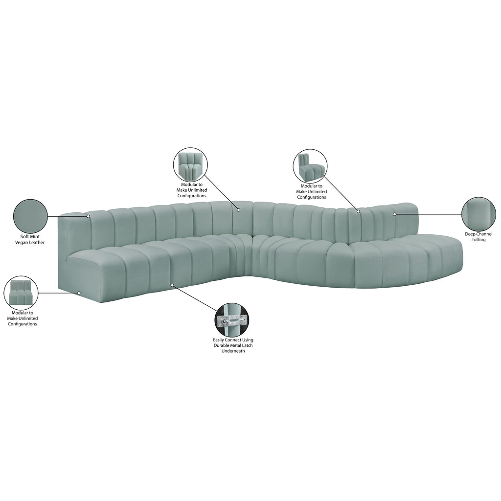 Meridian Arc 161" Mint Vegan Leather Upholstered 10 pc Modular Sectional