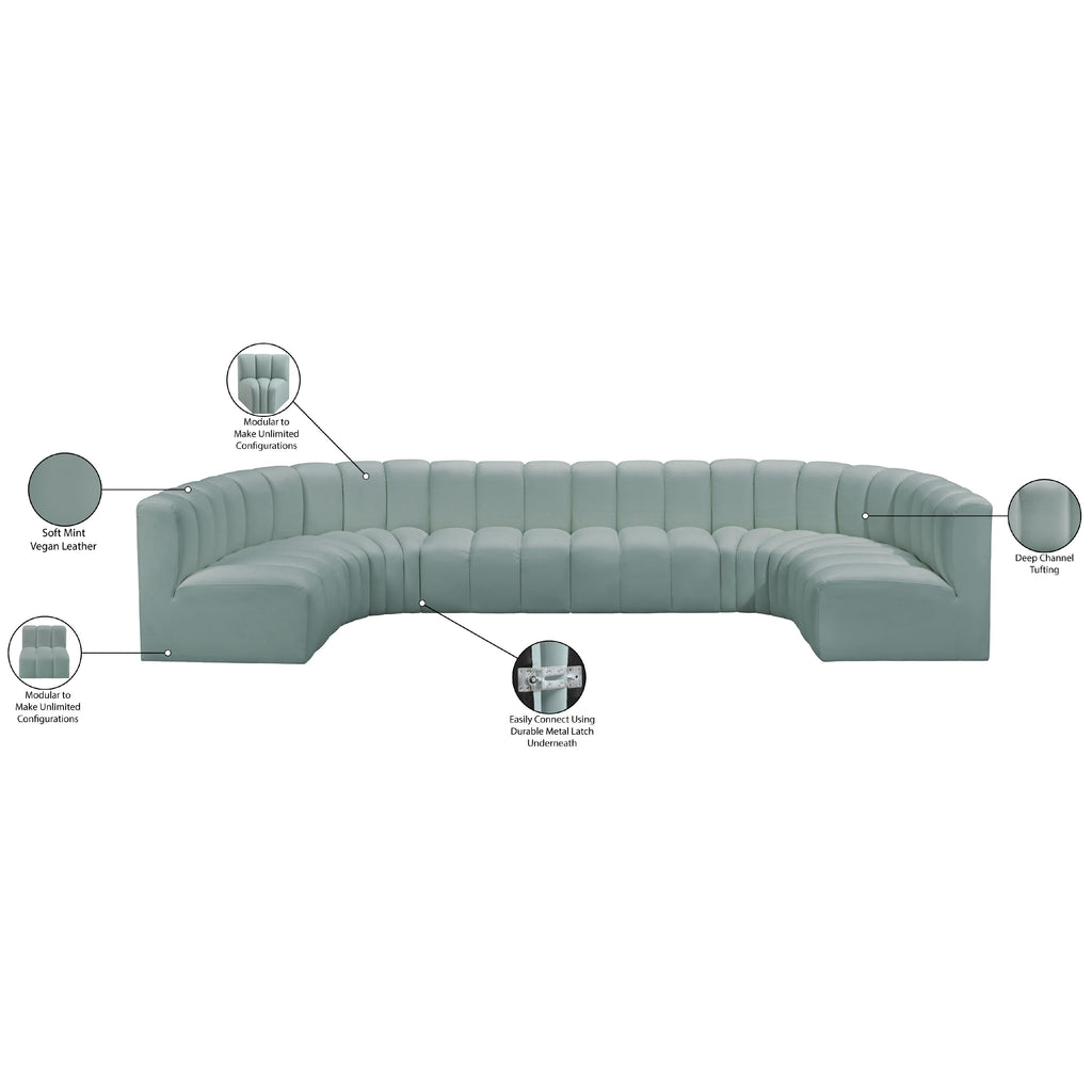 Meridian Arc 161" Mint Vegan Leather Upholstered 10 pc Modular Sectional