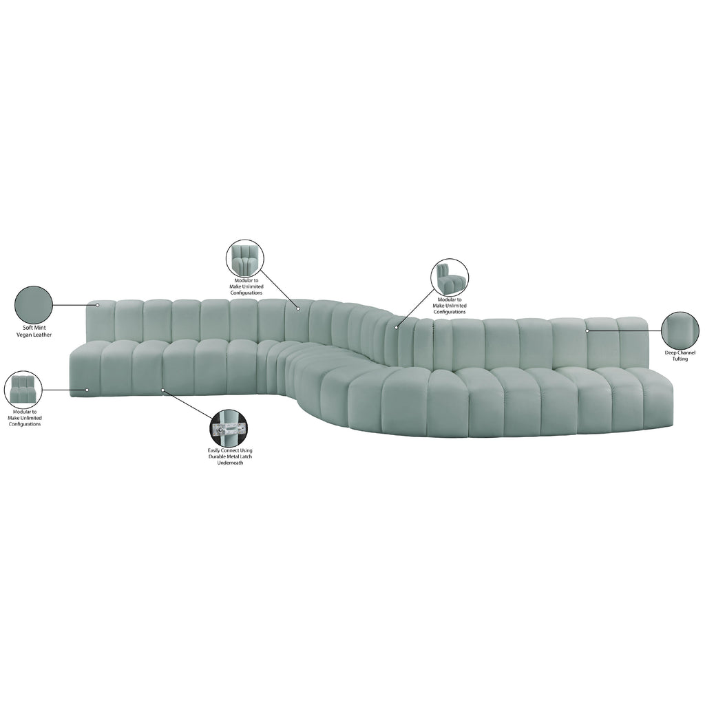Meridian Arc 161" Mint Vegan Leather Upholstered 10 pc Modular Sectional