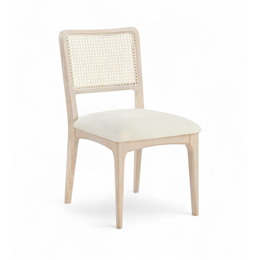 • Seat and Back Material: Vegan Leather / Synthetic Cane / Foam