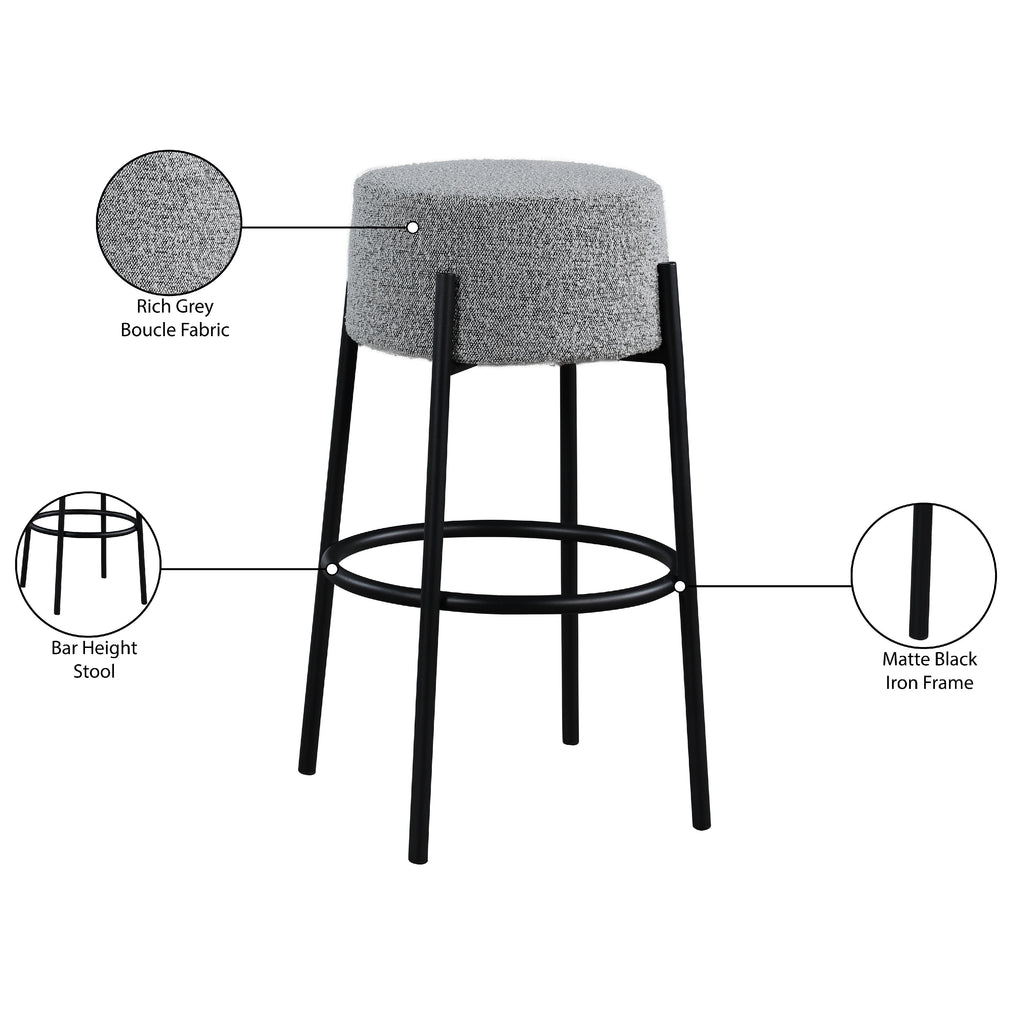 Meridian Avalon Grey Boucle Fabric Counter Stool