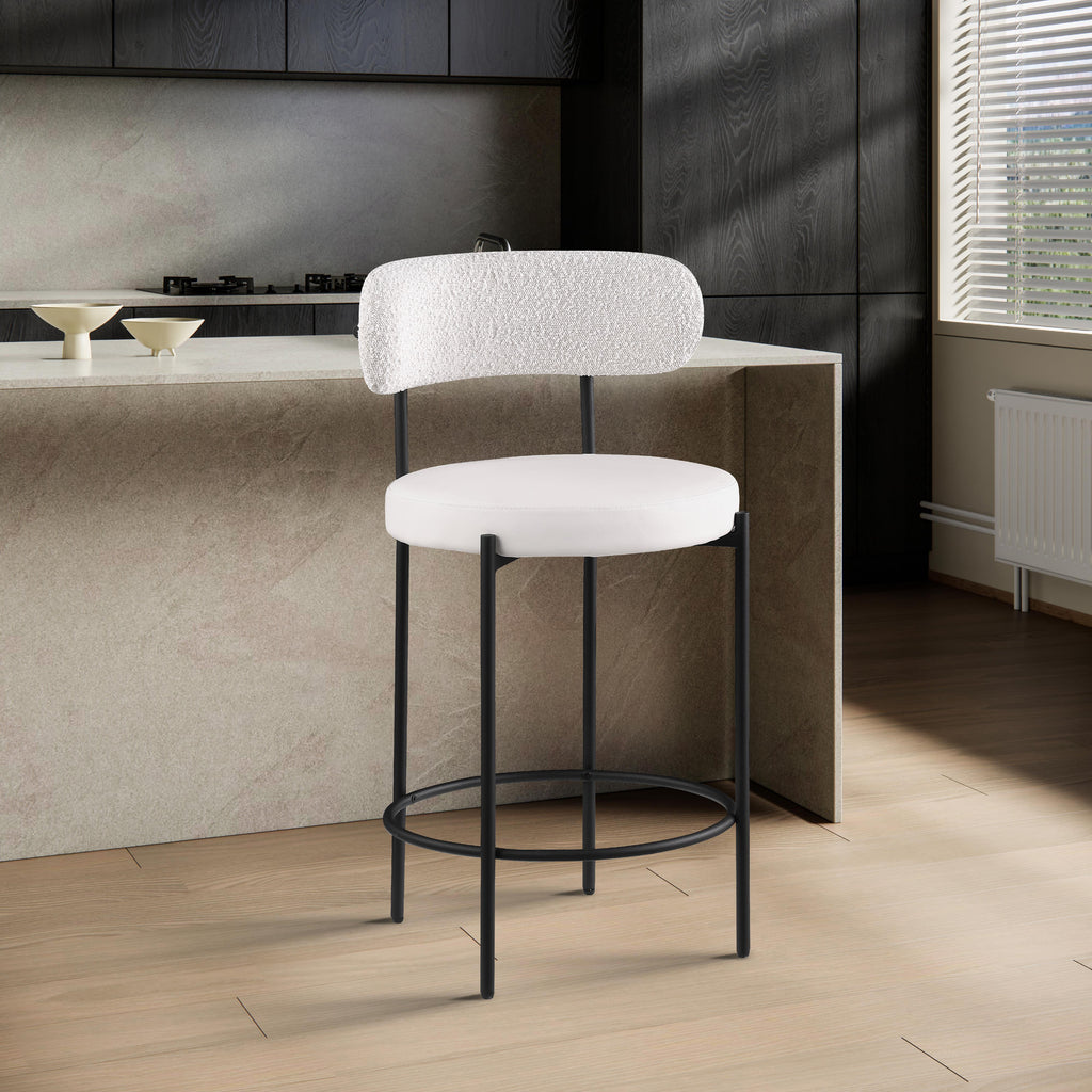 Meridian Beacon Cream Vegan Leather and Boucle Fabric Dining Chair