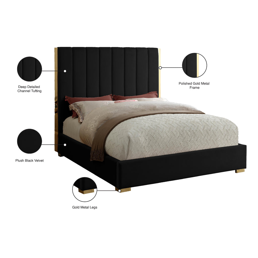 Meridian Becca Navy Velvet Upholstered Queen Bed