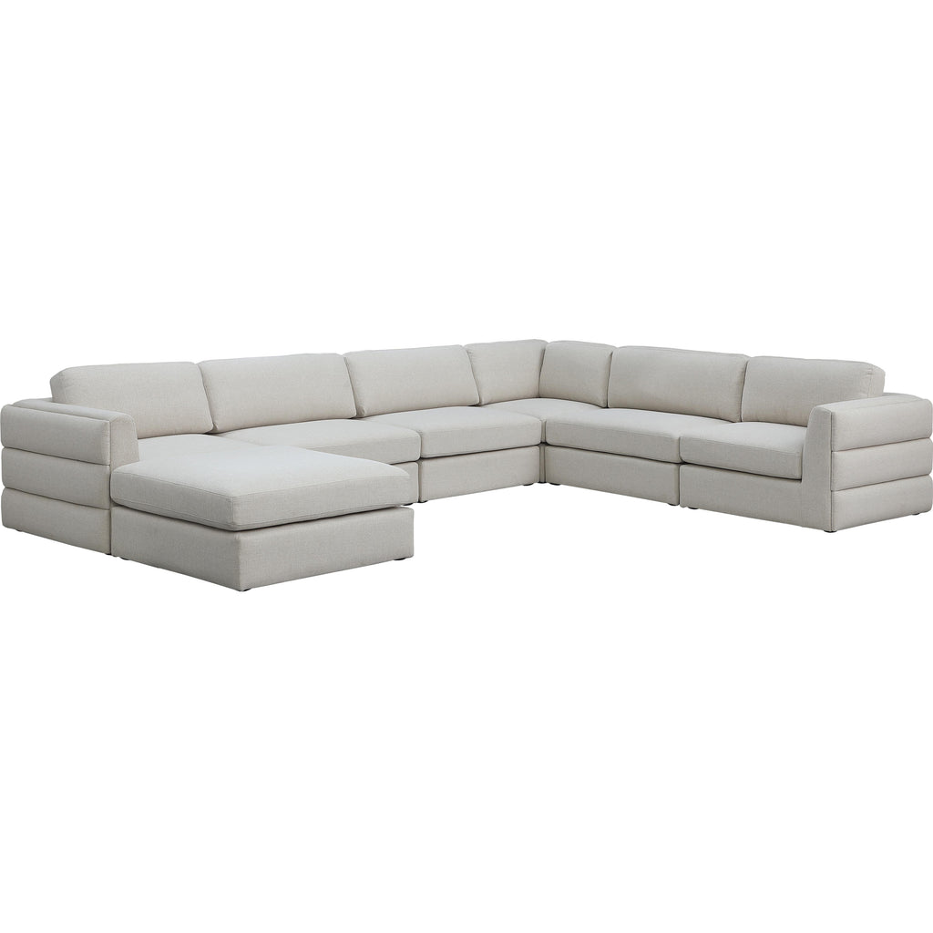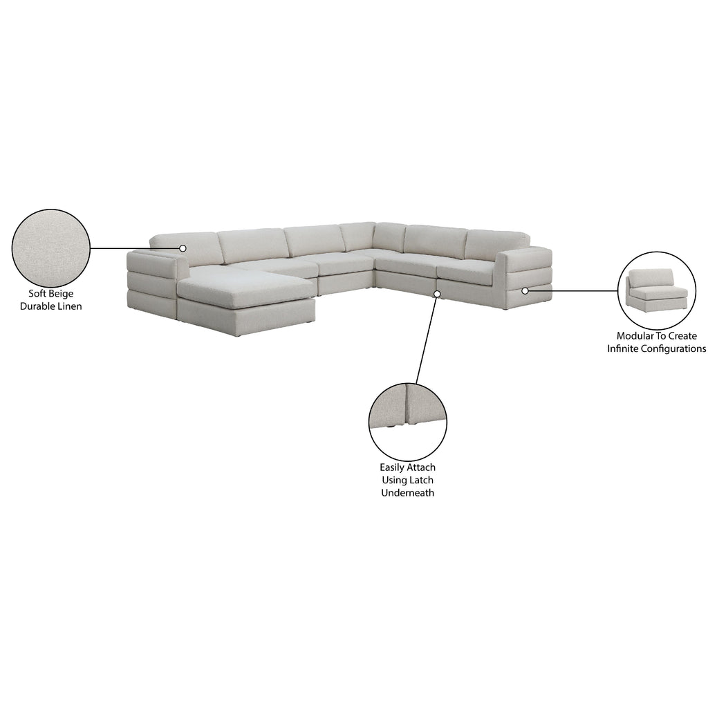 Meridian Beckham Beige Linen Textured Fabric Upholstered Modular Ottoman