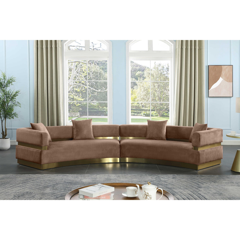 Meridian Belsa 148" Cognac Velvet Upholstered 2 pc Sectional