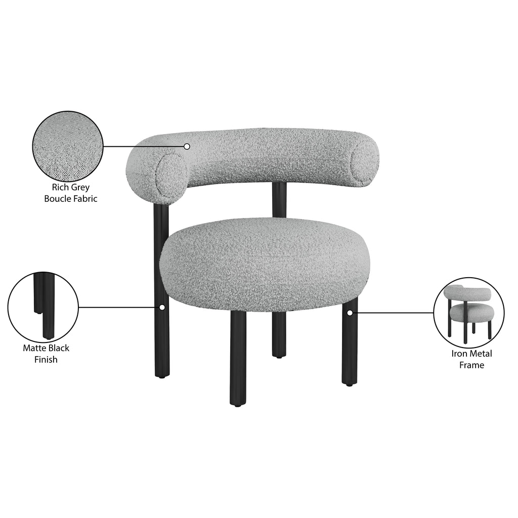 Boucle Fabric / Iron / Wood / Foam