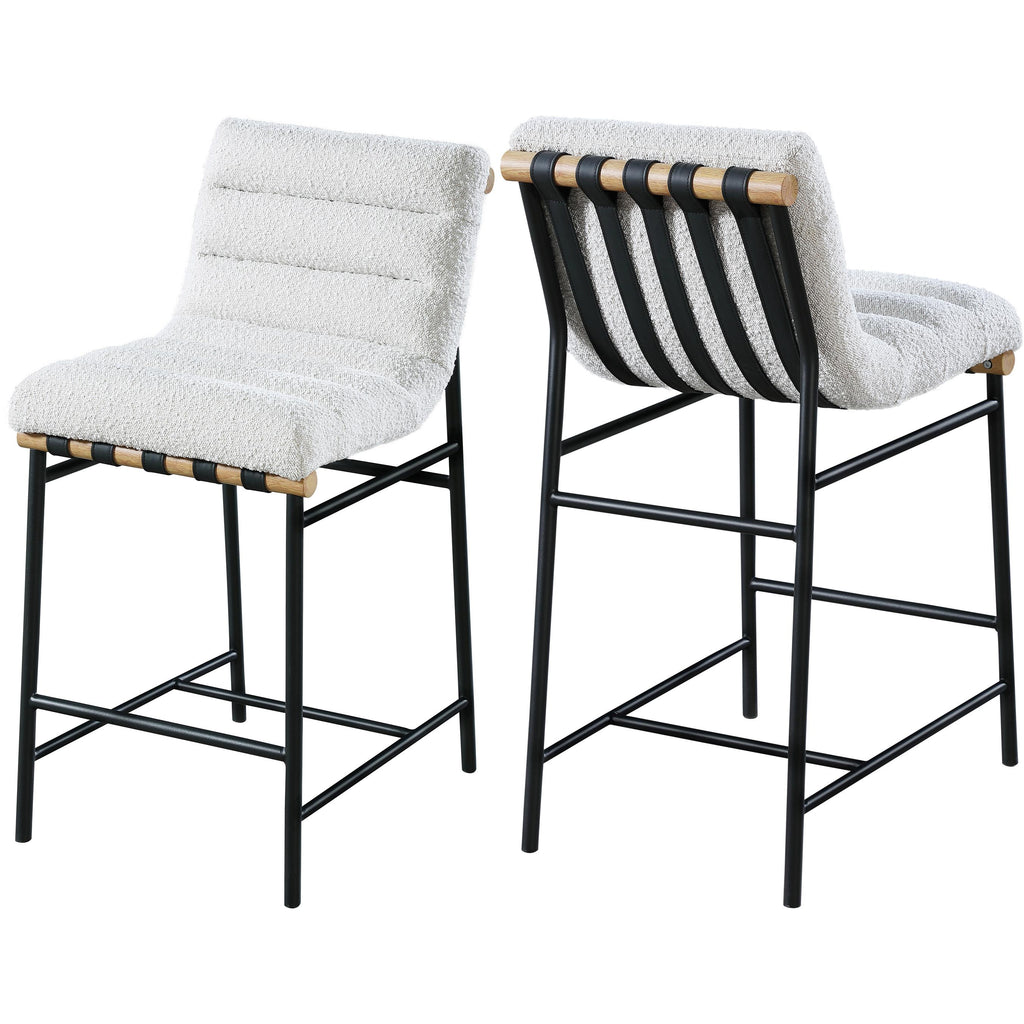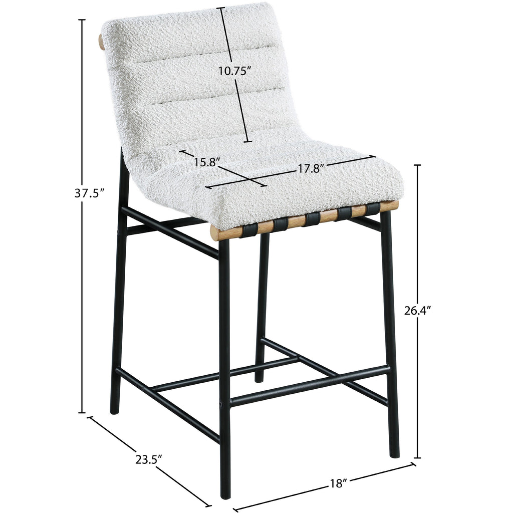 Boucle Fabric / Vegan Leather / Iron / Engineered Wood / Oak Veneer / Foam