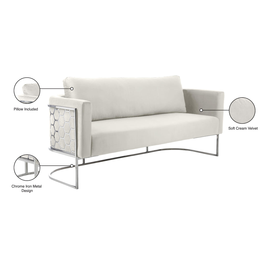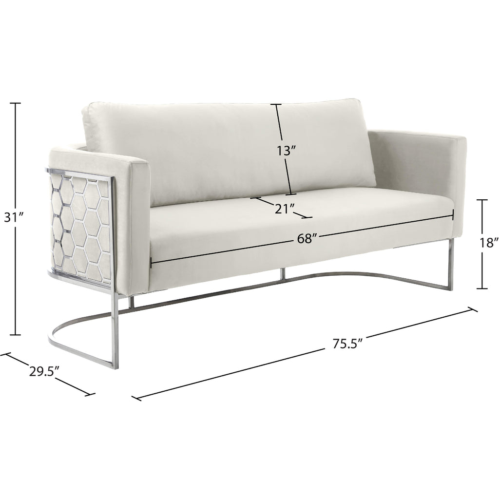 Meridian Casa 63.5" Cream Velvet Upholstered Loveseat