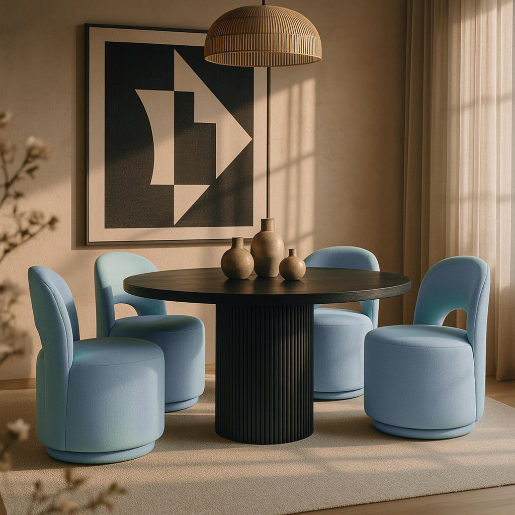 • Leg / Base Material: Linen Textured Fabric / Acacia Wood / Iron / Foam