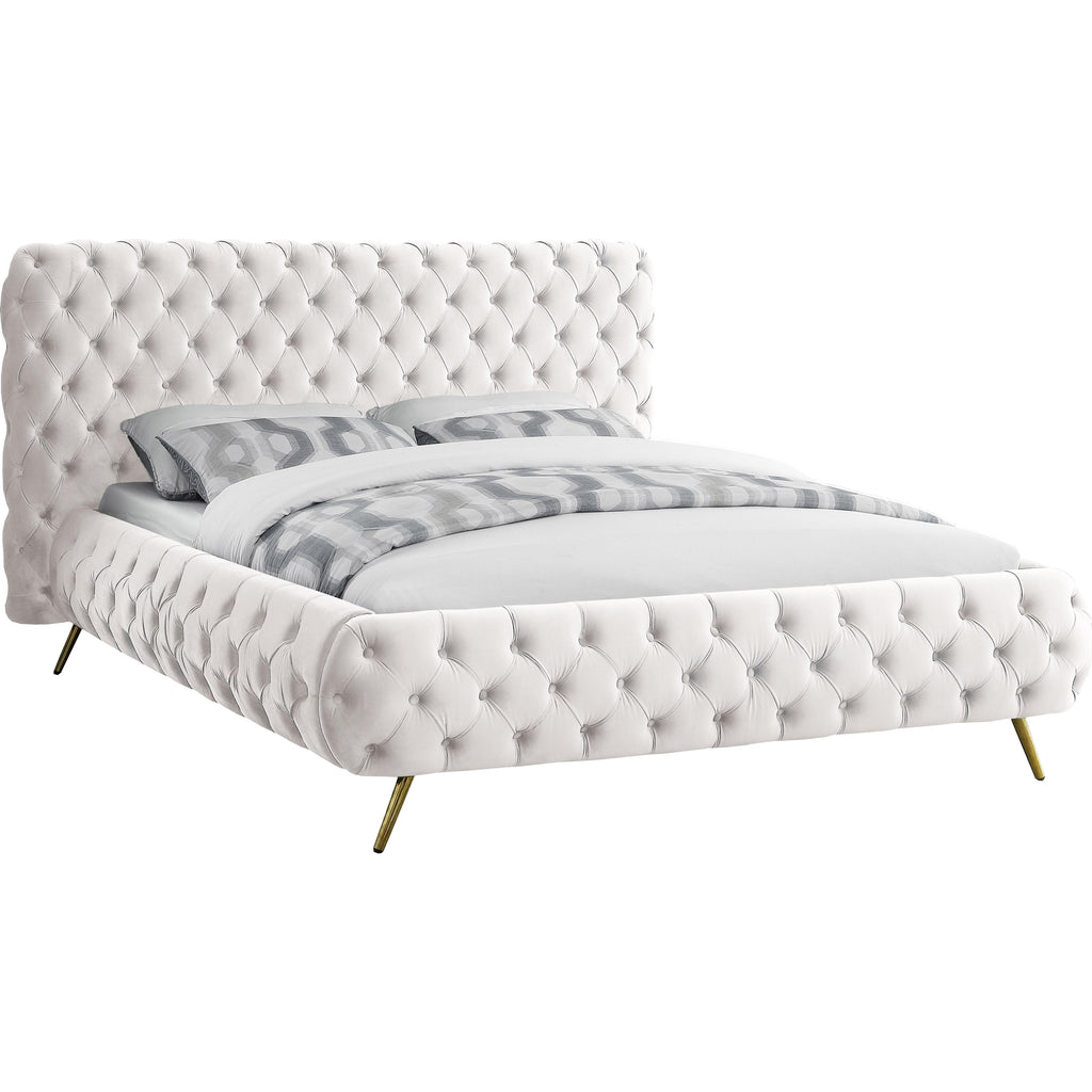 Meridian Delano Cream Velvet Upholstered Queen Bed