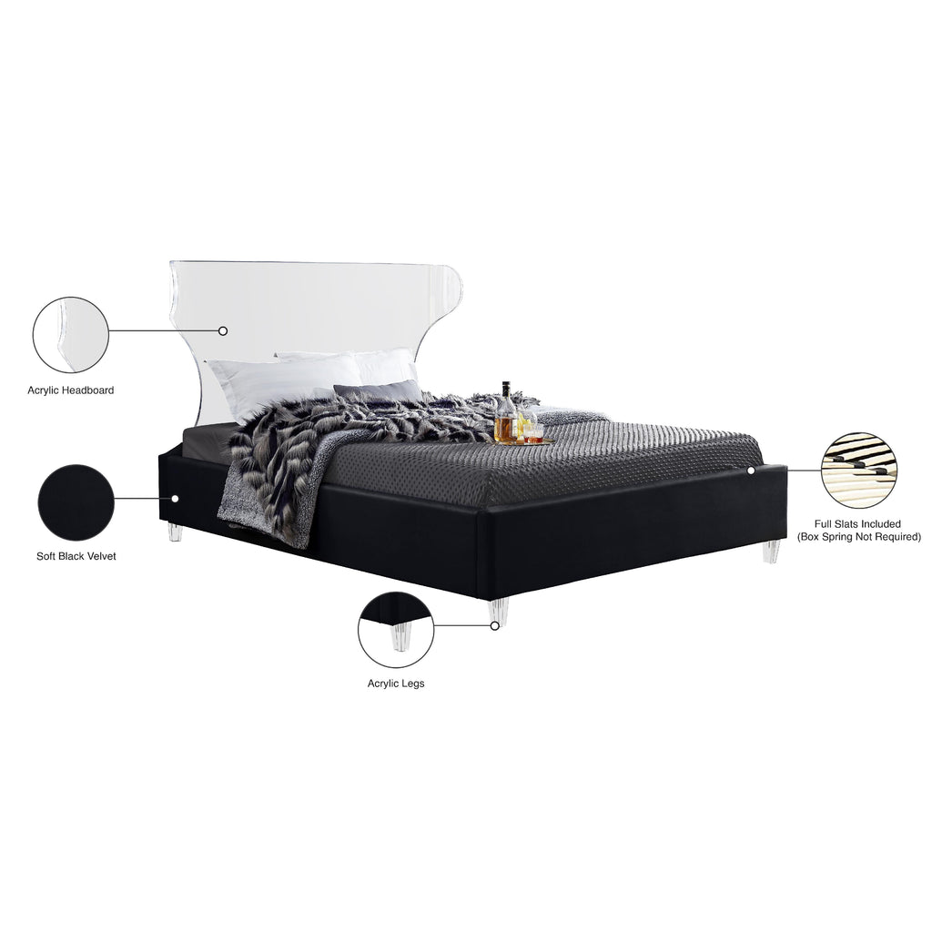 Meridian Ghost Black Velvet Upholstered Queen Bed