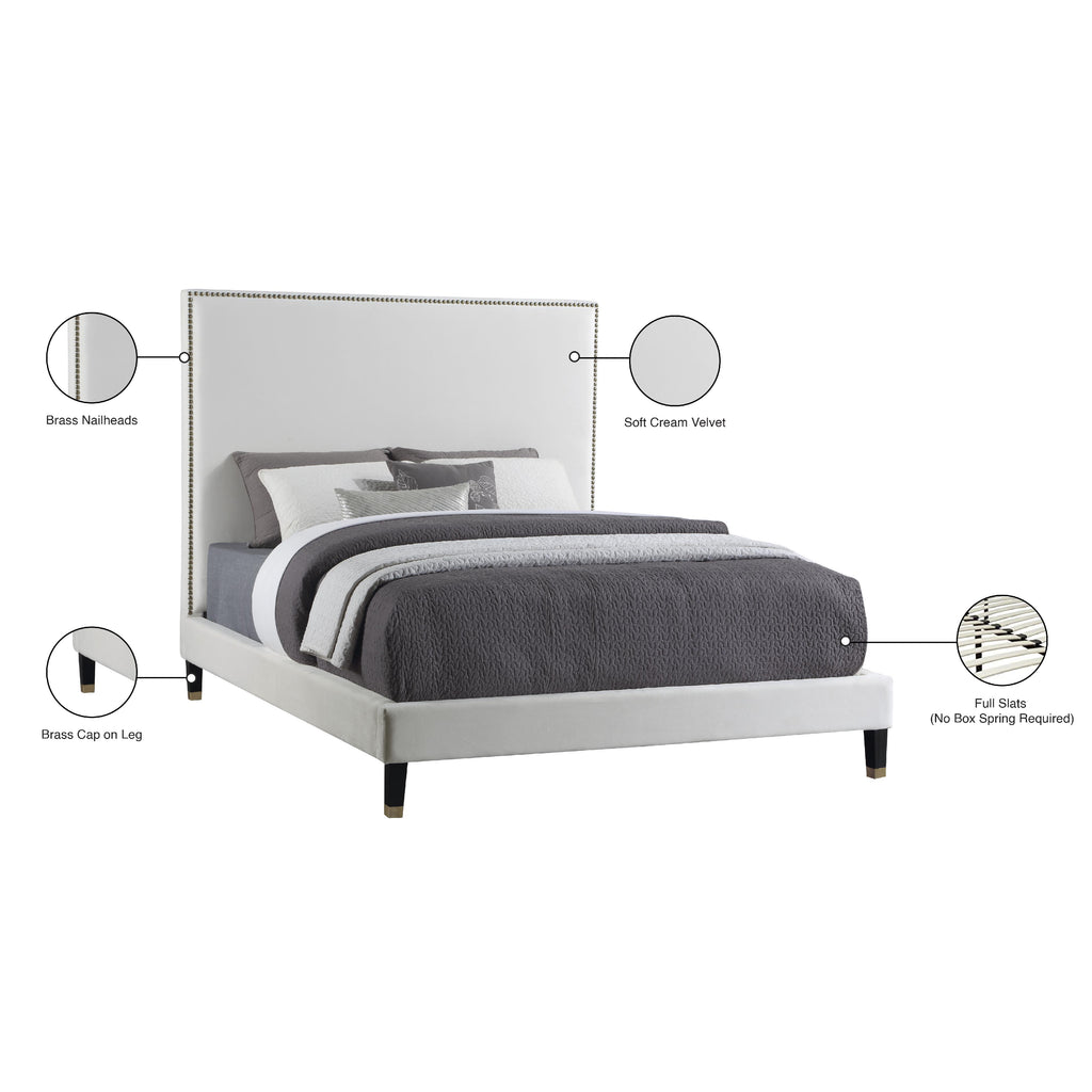Meridian Harlie Cream Velvet Upholstered Queen Bed