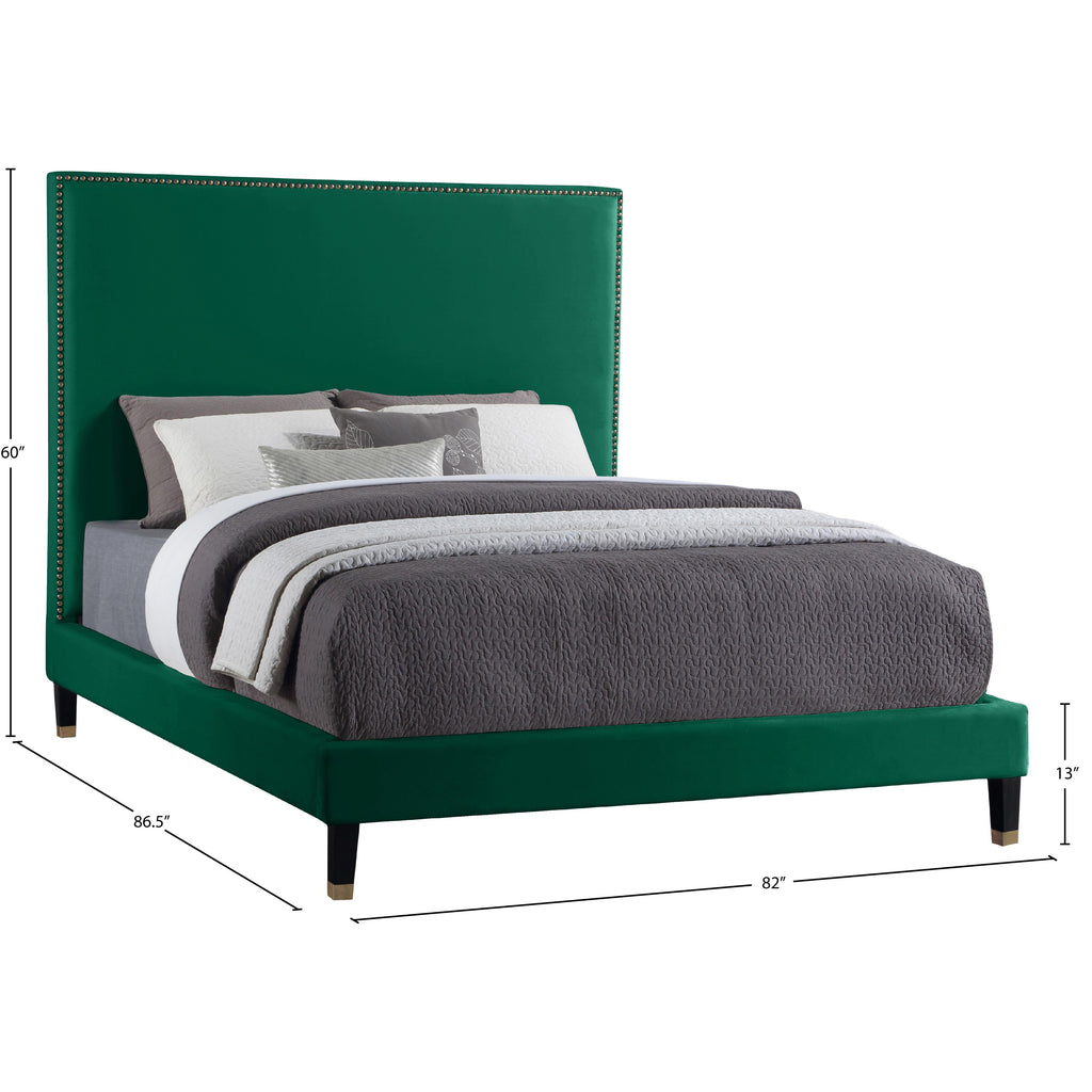 Meridian Harlie Green Velvet Upholstered Queen Bed