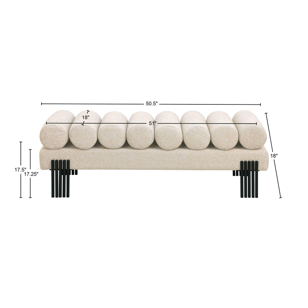 Meridian Akeela Cream Linen Textured Fabric Upholstered Bench