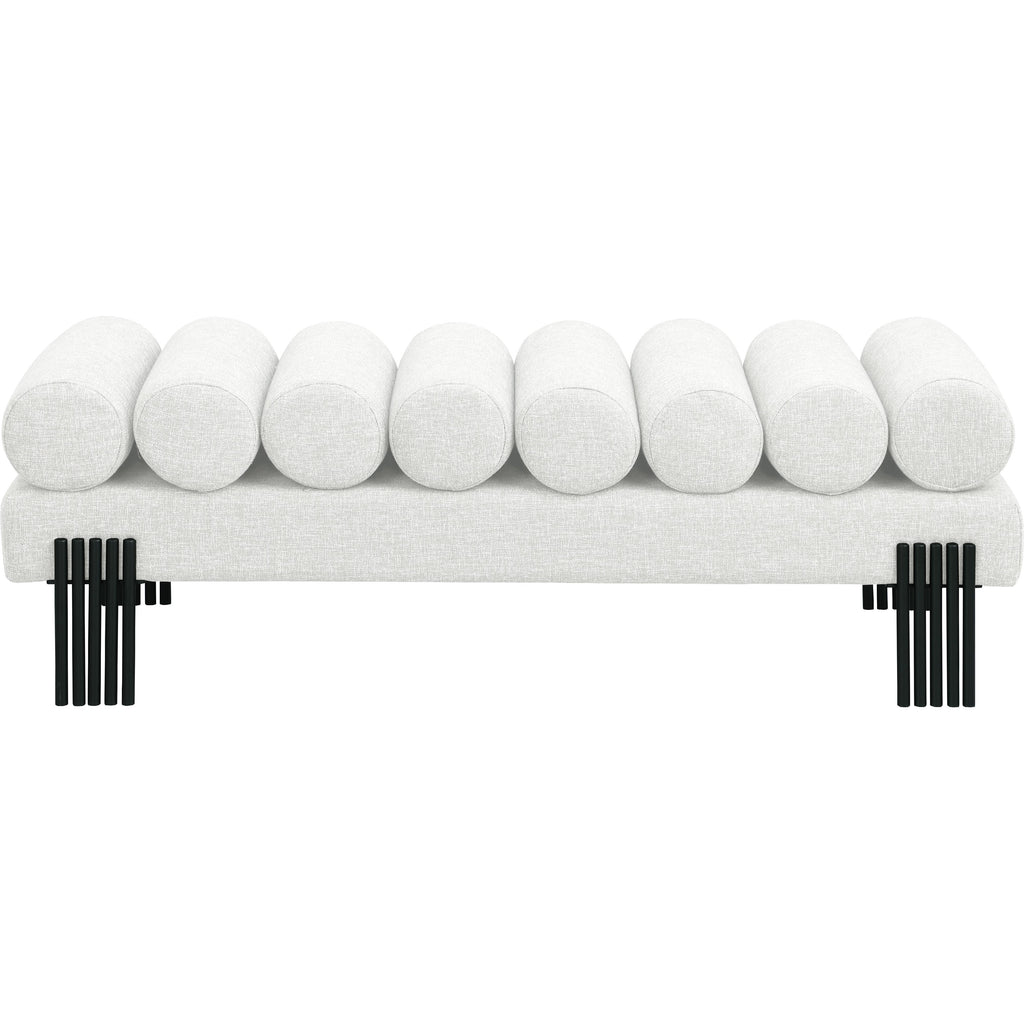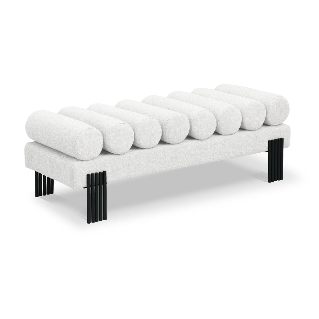 Meridian Akeela Beige Linen Textured Fabric Bench