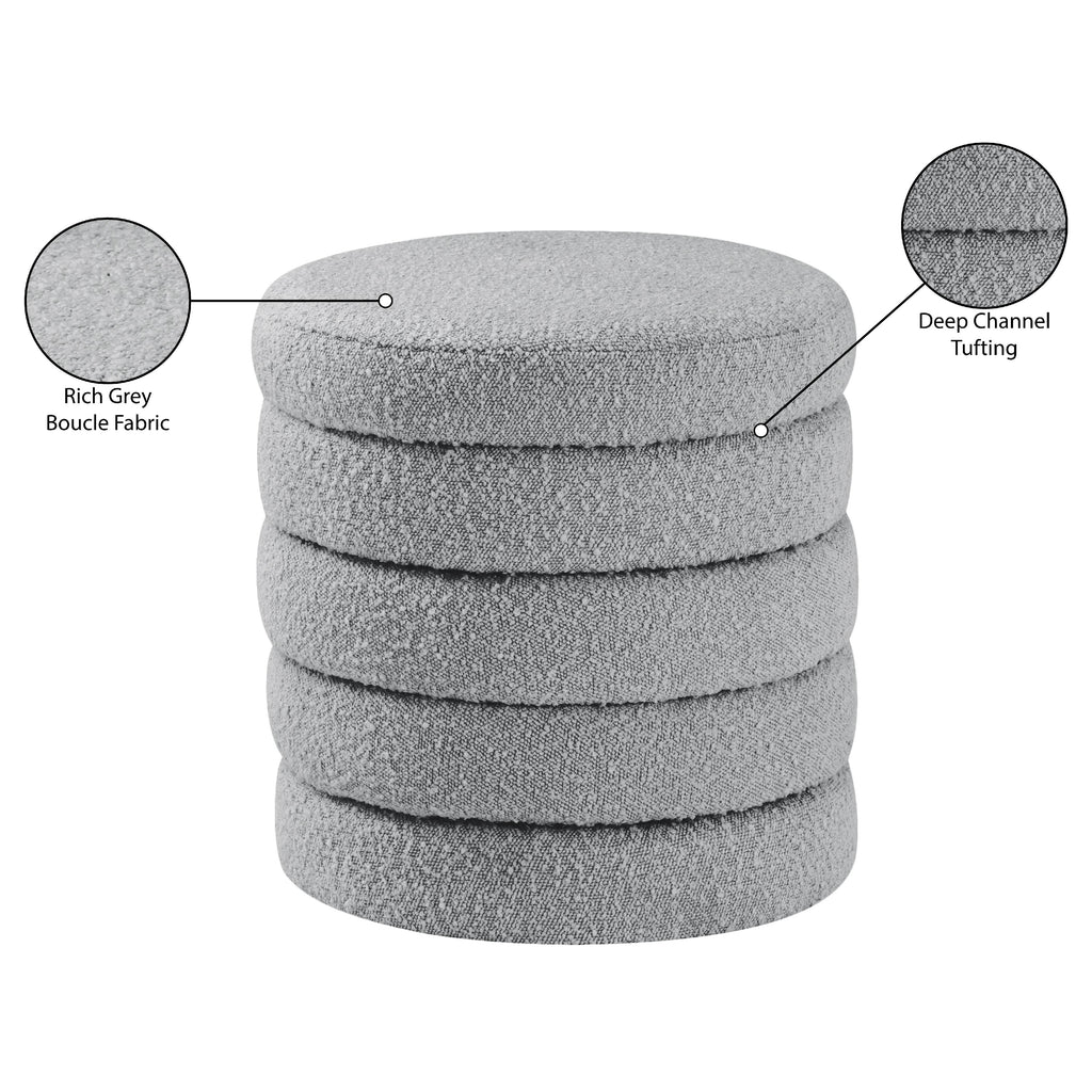 Meridian Aphia Grey Boucle Fabric Ottoman/Coffee Table