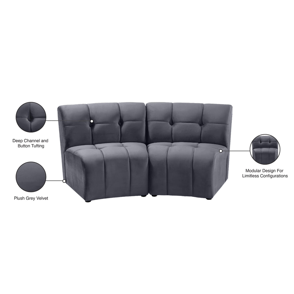 Meridian Limitless Grey Velvet 3 pc Modular Sectional