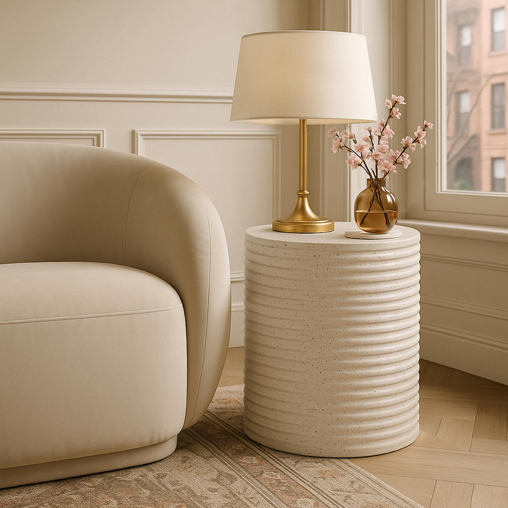 • Concrete Table in Ivory Terrazzo Finish