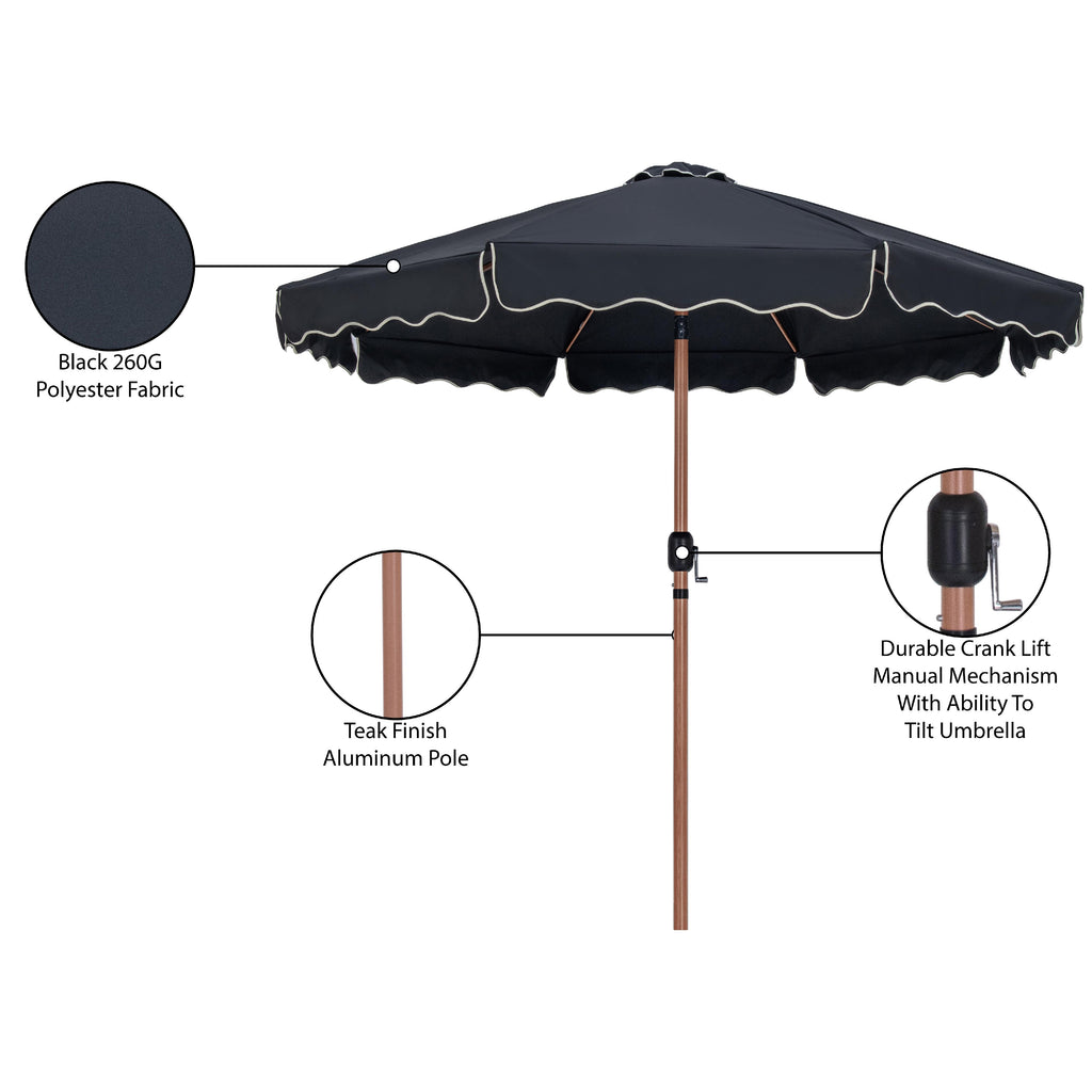Meridian Amalfi Black With Cream Piping Fabric Patio Umbrellas