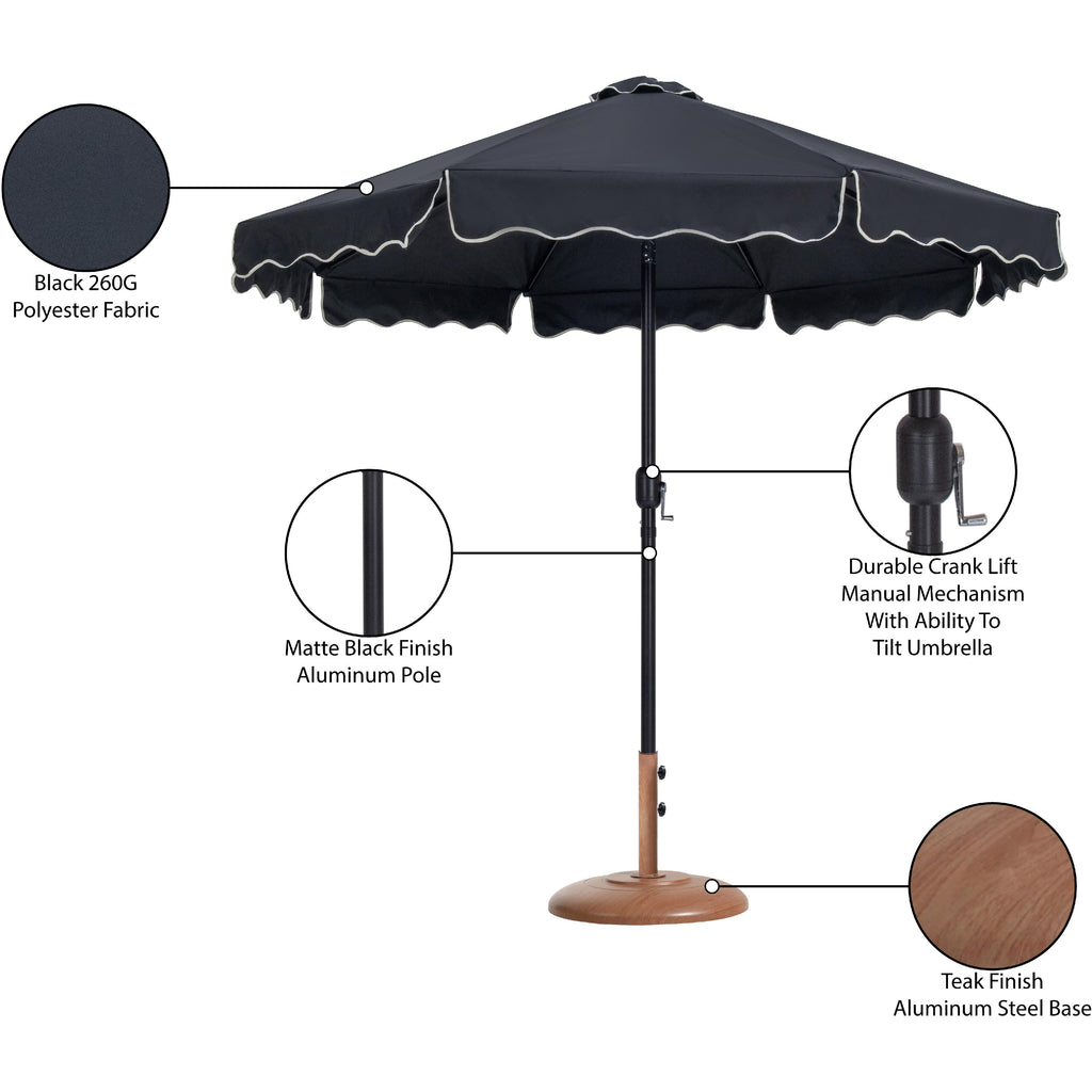Meridian Amalfi Black With Cream Piping Fabric Patio Umbrellas