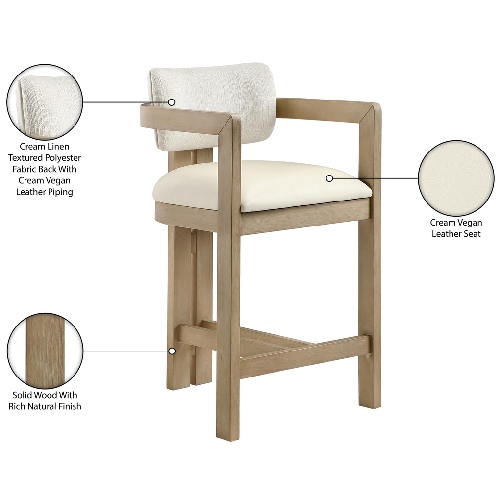 • Seat and Back Material: Vegan Leather / Linen Textured Fabric / Foam