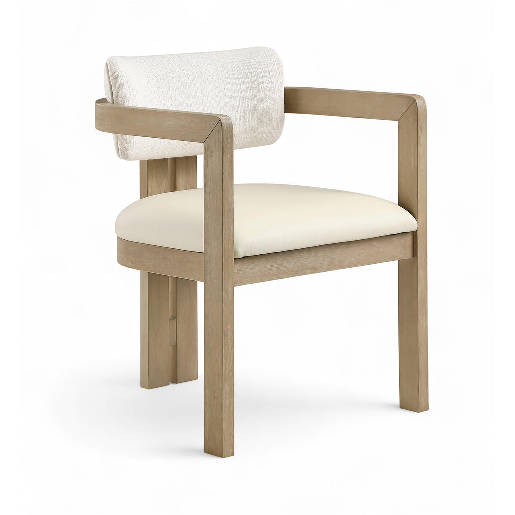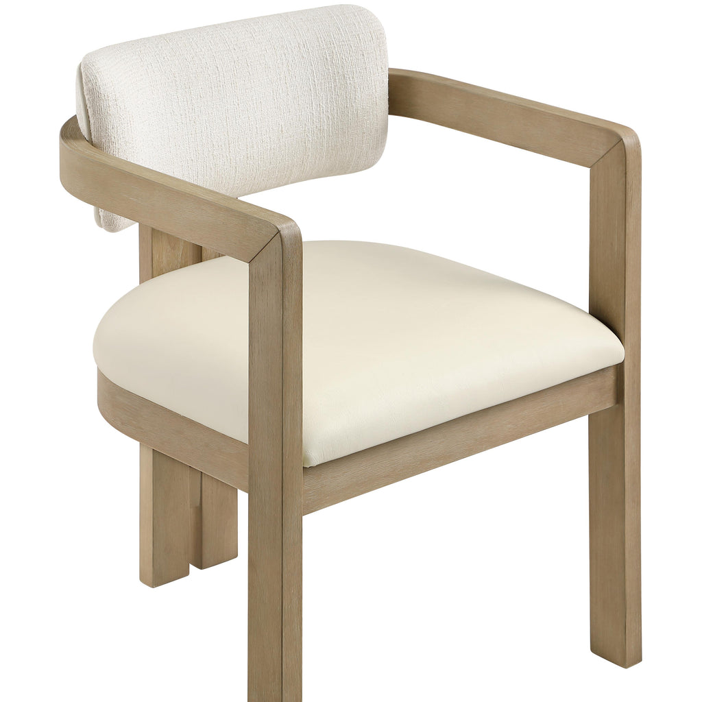 • Seat and Back Material: Vegan Leather / Linen Textured Fabric / Foam