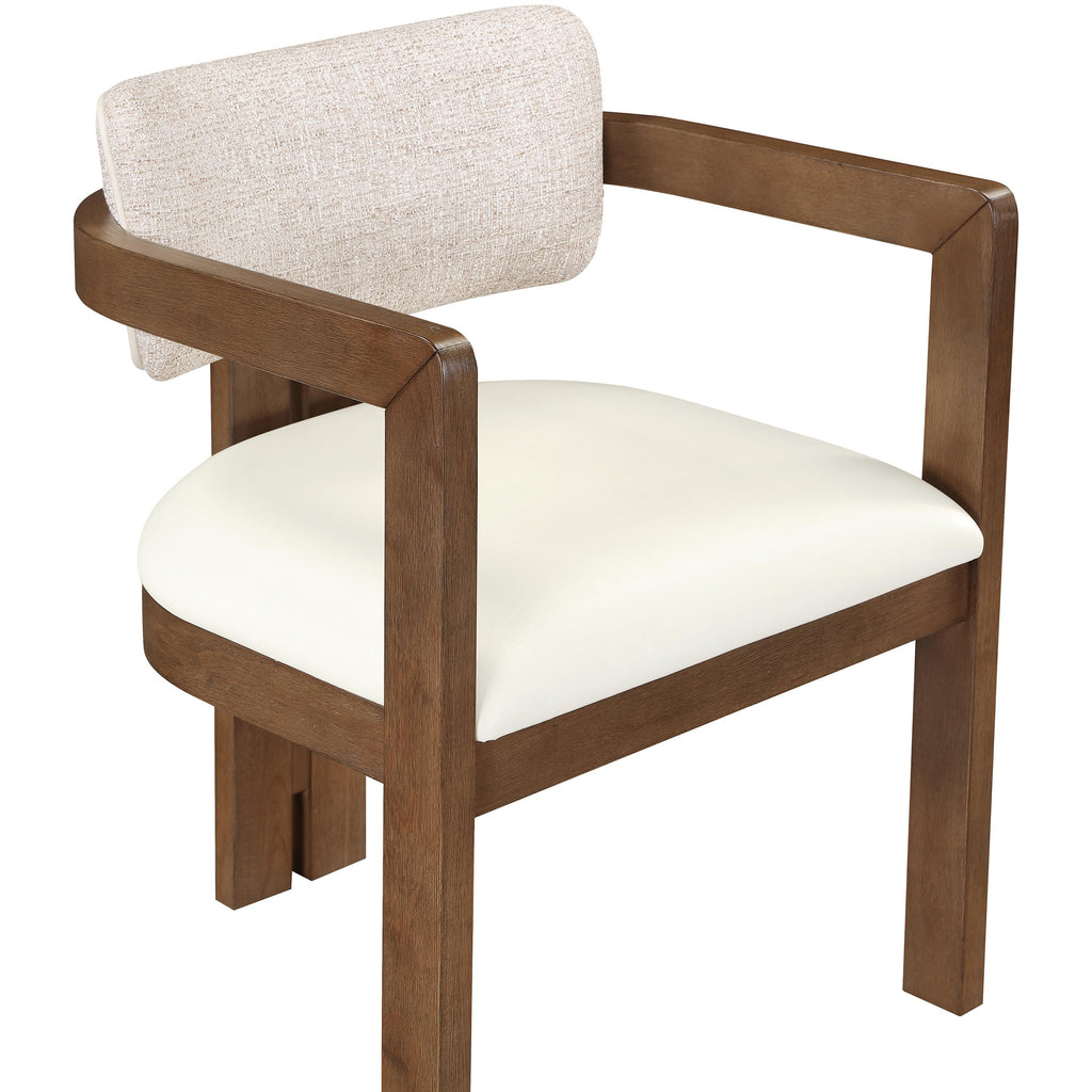 • Seat and Back Material: Vegan Leather / Linen Textured Fabric / Foam