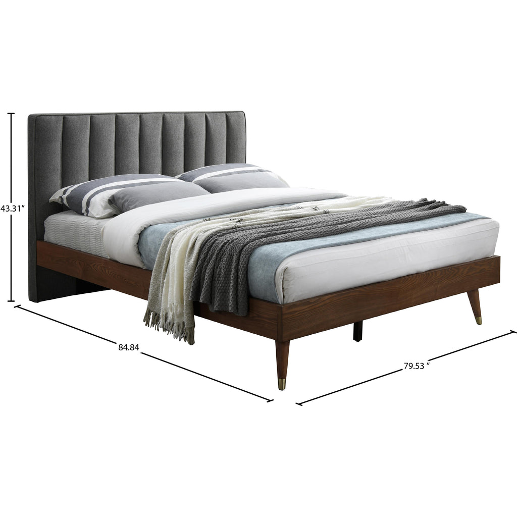 Meridian Vance Grey Linen Textured Fabric Upholstered Queen Bed