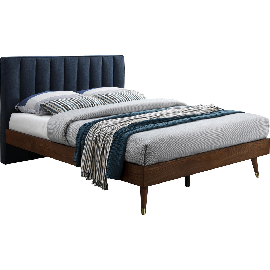 Meridian Vance Navy Linen Textured Fabric Upholstered King Bed