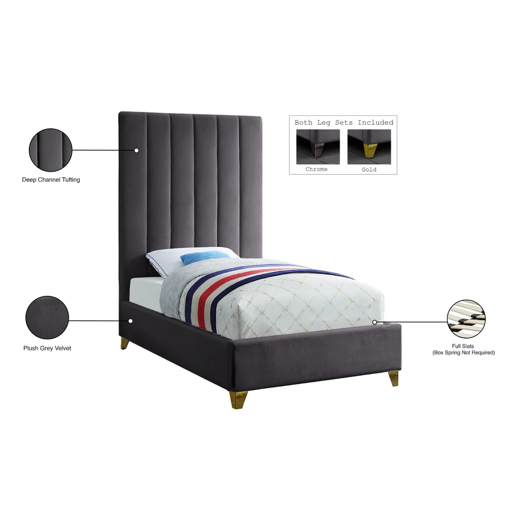Meridian Via Grey Velvet Full Bed