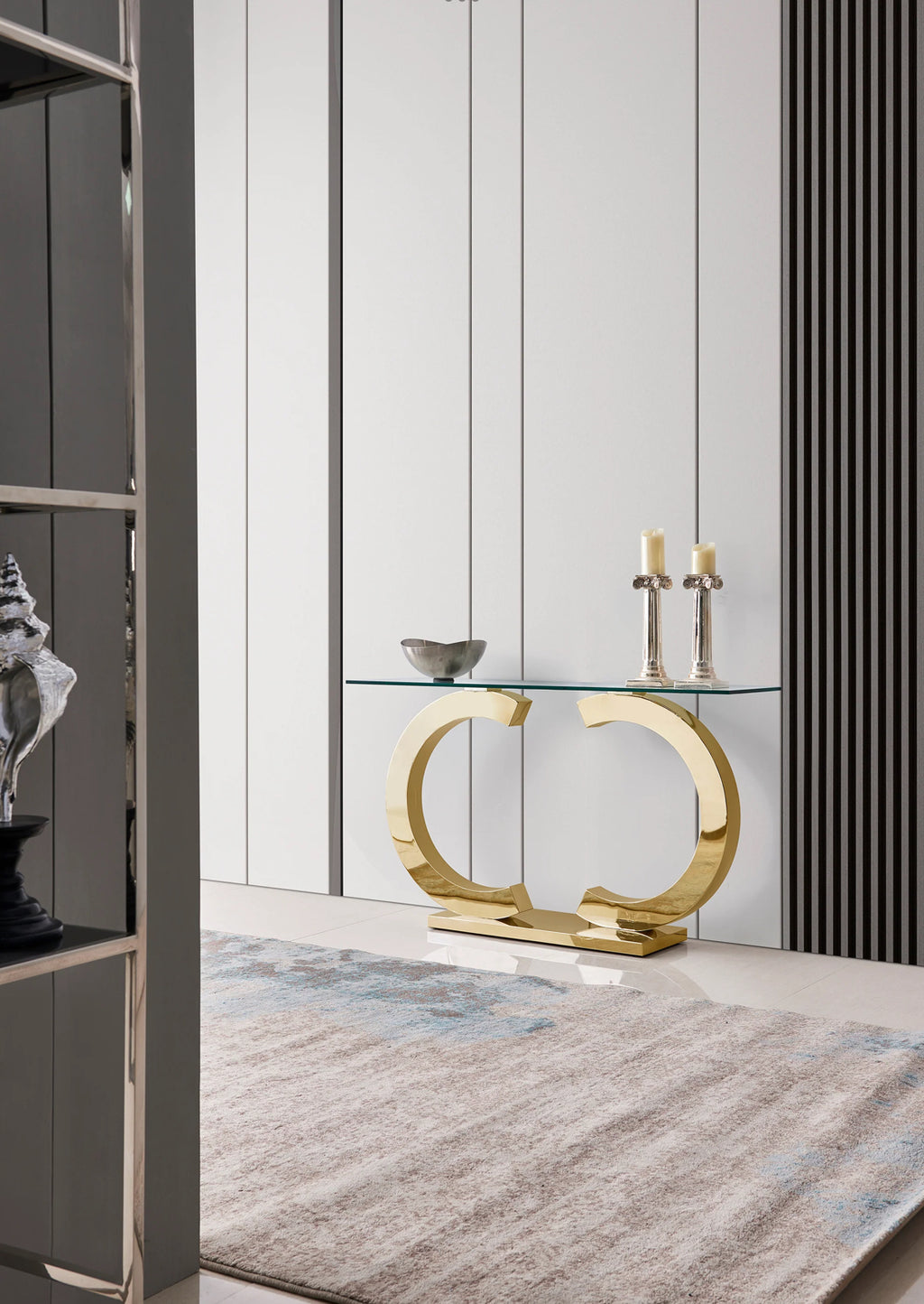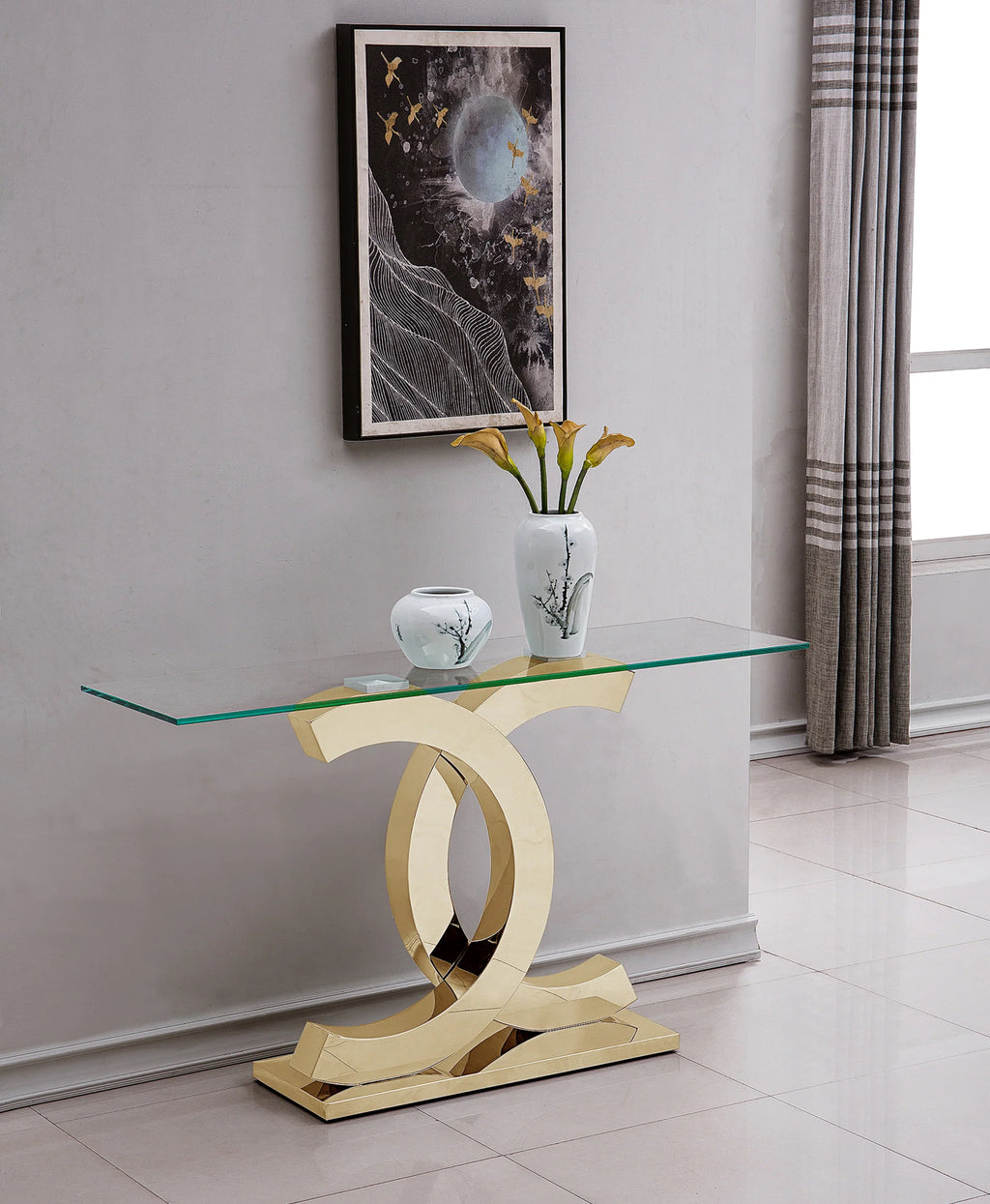 ST313G CLEAR GLASS TOP W/ GOLD BASE CONSOLE TABLE
