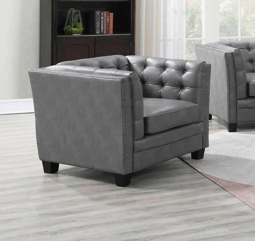 Button Tufted Stitching In The Chair Offers An Extra Touch Of Sophistication That Enhances Its Contemporary Design; Upholstered Our Is... Button Tufted Stitching In The Chair Offers An Extra Touch Of Sophistication That Enhances Its Contemporary Design; Upholstered Our Is Generously Upholstered, This Provides A Smooth, Cozy Cushioning, Immaculate Texture, Giving Any Room A Refined Appearance; Nailhead Expertly Styled, This Piece Has Tasteful Nailhead Accents Bordering Its Frame. Each Nailhead Is Individually Applied For A Beautiful, Hand-Crafted Touch. View more